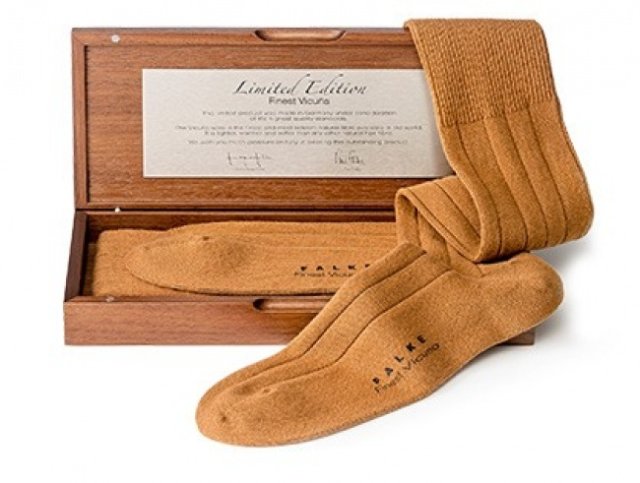 Οι μάλλινες κάλτσες της FALKE κυκλοφόρησαν σε πολύ περιορισμένο αριθμό· μόλις 10 ζευγάρια. Οι κάλτσες είναι από μαλλί βικούνιας. Το μαλλί αυτού του ζώου θεωρείται το σπανιότερο και το ακριβότερο στον κόσμο.