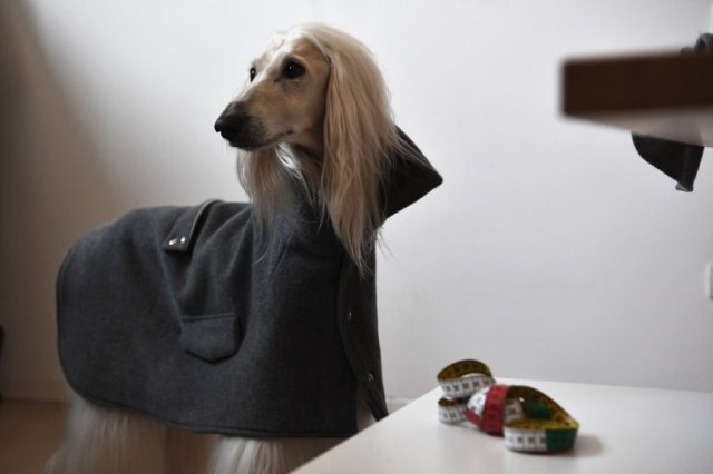 "Είναι πολύ προσεκτική και σέβομαι απόλυτα όλες τις ανάγκες του σκύλου, οι οποίες είναι να μπορεί να κινείται, να τρέχει, να λερώνεται, να είναι κοινωνικός. Αρνούμαι να κάνω πράγματα που τον περιορίζουν ή τον γελοιοποιούν, καθώς αυτός αντιλαμβάνεται τα πάντα", εξηγεί η σχεδιάστρια που έχει δύο αφγανικά λαγωνικά.