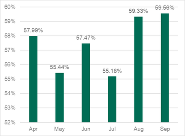 Μαζί με την αύξηση των blockchain απατών, ο μέσος όρος των spam email έχει αυξηθεί στο 58,02%, μέγεθος 1,05 ποσοστιαίες μονάδες υψηλότερο σε σύγκριση με το δεύτερο τρίμηνο. Σύμφωνα με την έκθεση, η μέγιστη δραστηριότητα spam email πραγματοποιήθηκε τον Σεπτέμβριο και άγγιξε το 59,56%.