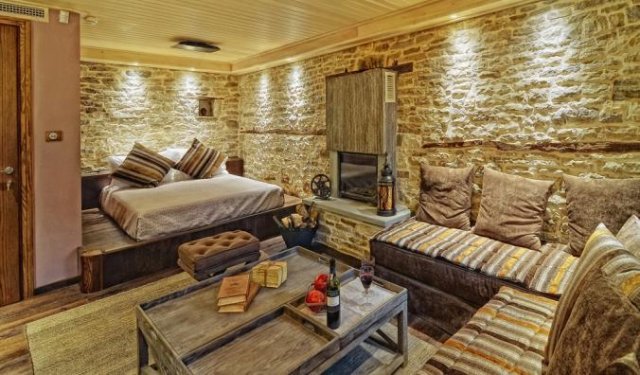 Μαύροπλακα ξύλινα κουφώματα, υπέροχες καμινάδες, πλάκες δαπέδου αντίγραφα των παλιών αρχοντικών του Ζαγορίου, περίτεχνη λιθοδομή με σκαλίσμενα στο χέρι τελειώματα και χάλκινες υδροροές συνδυάστηκαν σε όλα τα δωμάτια με ξύλινα πάτωματα, ενεργειακά τζάκια, κλιματισμό. Καμπίνες υδρομασάζ - χαμαμ, δωρεάν wi-fi σε όλους τους χώρους με εκπληκτικές ταχύτητες και τηλεοράσεις υψηλής ευκρίνειας με απεριόριστα δορυφορικά κανάλια.