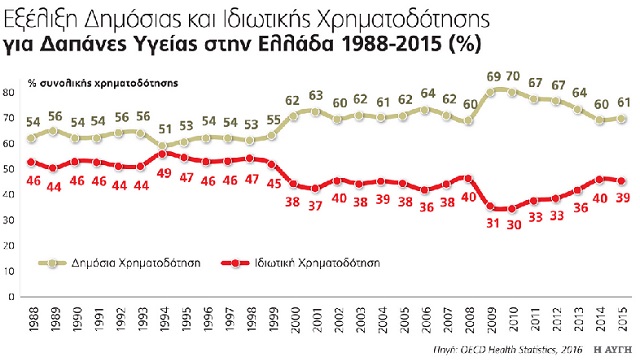 Τα ασφαλιστικά ταμεία επωμίσθηκαν σχεδόν το σύνολο αυτών των κολοσσιαίων δαπανών υγείας, καθώς σ'αυτό το διάστημα η συμμετοχή των ιδιωτών ήταν μόλις 2,3%!