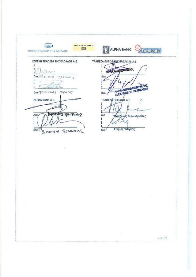 Στη Γ.Σ. αναγνώσθηκε η επιστολή των τεσσάρων τραπεζών με την οποία δηλώνουν ότι εξετάζουν θετικά την κάλυψη υφιστάμενου κοινοπρακτικού της δανείου, βάσει της μεταβίβασης στις τράπεζες απαιτήσεων ύψους 300 εκατομμυρίων και παροχής πρόσθετων εγγυήσεων εκ μέρους της υπό ίδρυση εταιρείας Ενεργειακή Συμμετοχών.