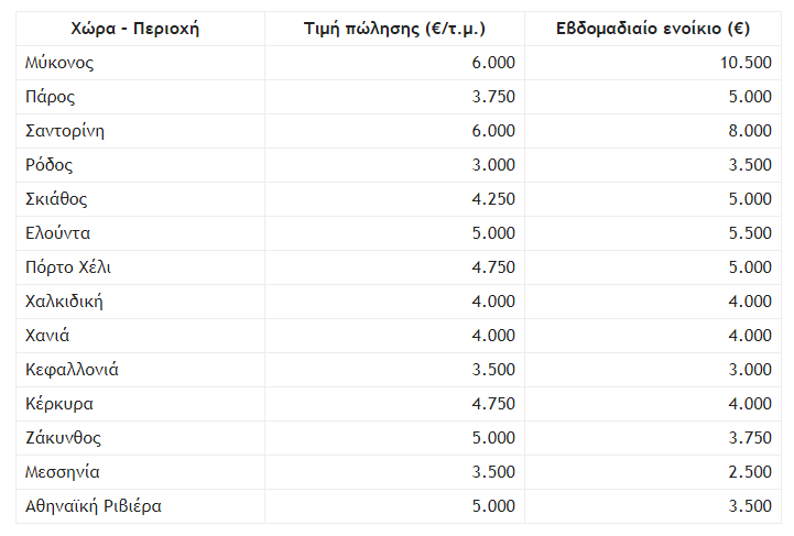 Στην Ελλάδα, οι ζητούμενες τιμές παρέμειναν σταθερές, αντανακλώντας, σύμφωνα με την Algean Property, την ανάκαμψη της αγοράς, ενώ οι μισθωτικές αξίες παρέμειναν υψηλές λόγω της πολύ καλών αποδόσεων του ελληνικού τουρισμού.