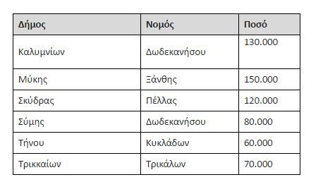 Στον ακόλουθο πίνακα αναφέρονται αναλυτικά τα ποσά: