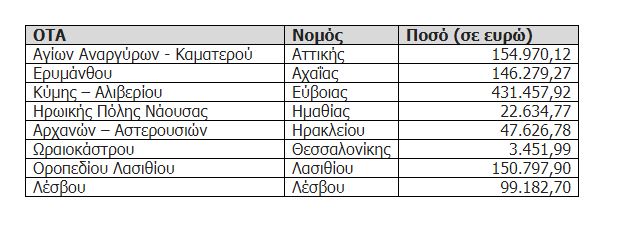 Ο Υπουργός Εσωτερικών, Πάνος Σκουρλέτης, ενέκρινε την επιχορήγηση συνολικού ποσού 1.056.401,45 ευρώ στους Δήμους της Χώρας που αναφέρονται στον ακόλουθο πίνακα, αποκλειστικά και μόνο για την εξόφληση υποχρεώσεών τους που προέρχονται από δικαστικές αποφάσεις και διαταγές πληρωμής που έχουν καταστεί τελεσίδικες έως 31/7/2017 και αφορούν σε αξιώσεις από προμήθειες αγαθών ή παροχή υπηρεσιών ή εκτέλεση έργων, με χρέωση του λογαριασμού του Υπουργείου Εσωτερικών που τηρείται στο Ταμείο Παρακαταθηκών και Δανείων με τον τίτλο «Κεντρικοί Αυτοτελείς Πόροι των Δήμων», στο πλαίσιο του Προγράμματος Αυτοδιοίκηση Κοινωνική Συνοχή - Ισόρροπη Ανάπτυξη (ΑΚΣΙΑ).