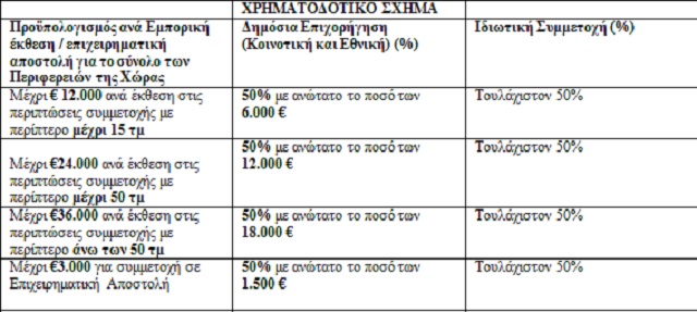 Η ημερομηνία έναρξης επιλεξιμότητας δαπανών θα είναι η ημερομηνία ηλεκτρονικής υποβολής της αίτησης χρηματοδότησης και επιλέξιμες είναι οι δαπάνες για συμμετοχή των δικαιούχων σε εμπορικές εκθέσεις και επιχειρηματικές αποστολές. Η συμμετοχή πρέπει να αφορά: