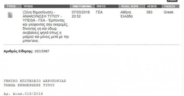Σε μια απίστευτη γκάφα υπέπεσε το βράδυ της Τετάρτης, το Αθηναϊκό και Μακεδονικό Πρακτορείο Ειδήσεων, κατά την παρουσίαση της ανακοίνωσης του ΓΕΑ, για τις κρίσεις στην ηγεσία της Πολεμικής Αεροπορίας.