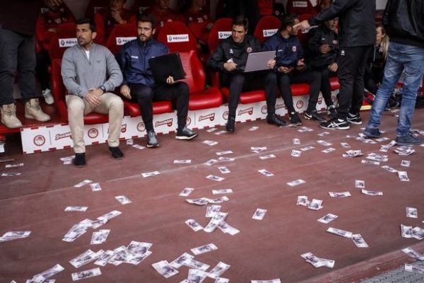 Απ΄ όλα είχε το παιχνίδι Ολυμπιακού – Πλατανιά που διεξήχθη στις 3 το μσεσημέρι της Κυριακής στο γήπεδο Γ. Καραϊσκάκης. Πολλά γκόλ, καθώς ο Ολυμπιακός κέρδισε τον Πλατανιά με 5-1, πολλά… ρούβλια που πέταξαν οι φίλαθλοι του Ολυμπιακού στους παίκτες του Πλατανιά, αλλά και υβριστικά πανό, που κατέβηκαν με την παρέμβαση του διαιτητή.