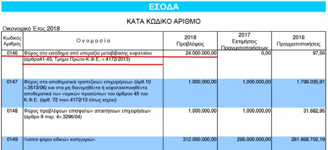 Ωστόσο στο επίσημο έγγραφο του Κράτος, τον Κρατικό Προϋπολογισμό, υπάρχει η πρόβλεψη για την είσπραξη εσόδων από τον Φόρο Υπεραξίας Ακινήτων, το 2018, και μάλιστα το ποσό των 24 εκατ. ευρώ.