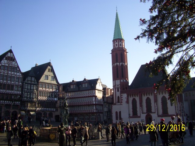 Το μεγαλύτερο μέρος της πόλης ισοπεδώθηκε κατά τον 2ον Παγκόσμιο Πόλεμο, αλλά σε σύντομο χρονικό διάστημα, η Φρανκφούρτη αναδύθηκε από τις στάχτες της. Η παλαιά πόλη (Altstadt) που βρίσκεται στην περιοχή Römerberg, ξαναχτίστηκε με ακρίβεια. Λιθόστρωτη, σήμερα την παλαιά ιστορική πόλη, την κοσμούν ξύλινα ανασκευασμένα σπίτια. και ο Γοτθικός Καθεδρικός της Φρανκφούρτης, το ιστορικό Δημαρχείο (Rathaus) στην Römerplatz μεταξύ των άλλων, και η ιστορική Προτεσταντική εκκλησία από το 12ον αι Alte Nikolaikirche.