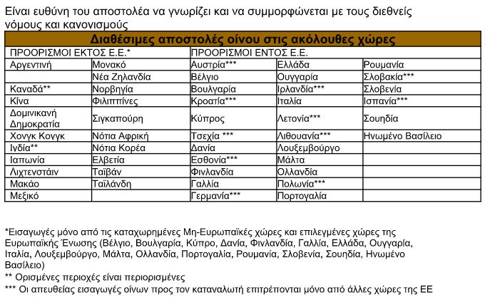 Οι καταναλωτές που αποστέλλουν μέσα στην Ευρωπαϊκή Ένωση μπορούν επίσης να επωφεληθούν από τη παροχή υπηρεσιών οίνου της UPS. Τώρα, μπορούν να στείλουν στο σπίτι το νέο τους αγαπημένο κρασί που ανακάλυψαν στις διακοπές με σιγουριά .