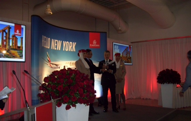 Αναχώρησε σήμερα στις 16.45 η πτήση της Εmirates ΕΚ 209 προς Νέα Υόρκη από τον Διεθνή Αερολιμένα Αθηνών, (ΔΑΑ) ύστερα από την ολοκλήρωση δεξίωσης για την υποδοχή του αεροσκάφους της αεροπορικής στον αεροδρόμιο Αθηνών από το Ντουμπάϊ, κυβερνήτης του οποίου ήταν έλληνας. Η εν λόγω σύνδεση έρχεται να καλύψει το τεράστιο κενό της μέχρι σήμερα απουσίας κατευθείαν σύνδεσηων της Αθήνας με την Νέα Υόρκη.