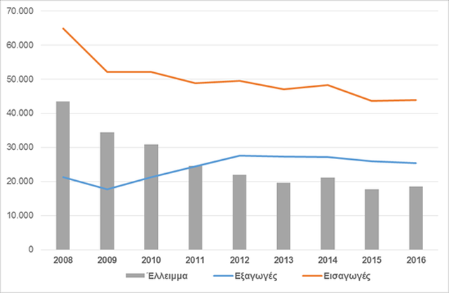 Ελληνικό εξωτερικό εμπόριο αγαθών, κλείσιμο έτους 2016