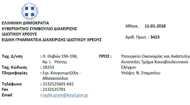 Το πλήρες κείμενο του εγγράφου του υπουργείου Οικονομίας και Ανάπτυξης