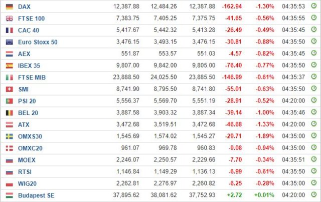Αρνητικά είναι τα πρόσημα των κύριων ευρωπαϊκών χρηματιστηριακών δεικτών, καθώς τα θετικά οικονομικά αποτελέσματα εταιρειών Kering και η Credit Suisse επισκιάζονται από τις ανησυχίες για την αύξηση των αποδόσεων των ομολόγων.