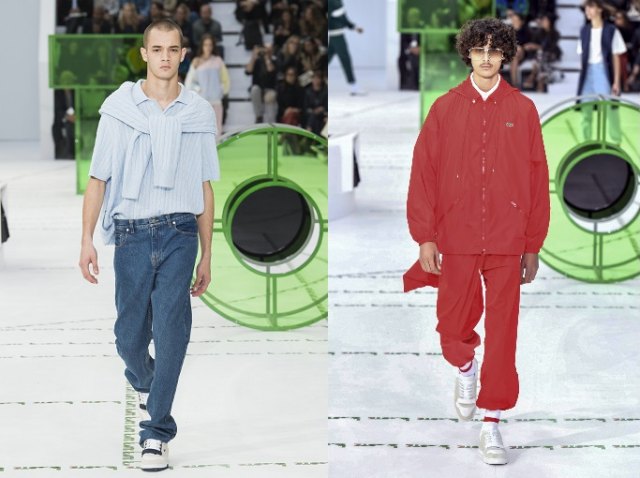 Ωστόσο η Λακόστ δεν παρεκκλίνει από τα εμβληματικά της χρώματα. Μένει κομψή και διαχρονική με το μπλε μαρίν, το κόκκινο της φωτιάς, το γκρι, το σκούρο πράσινο, το λευκό και τα παστέλ της δεκαετίας του 1980 όπως το απαλό κίτρινο και το ροζ.