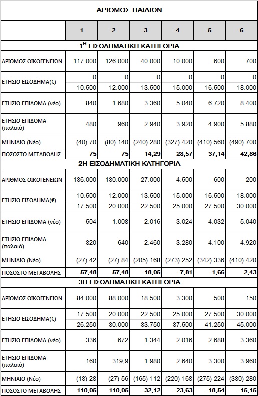 • Για 680.000 οικογένειες που έχουν έως και 2 παιδιά θα δουν αυξήσεις από 58% έως και 110,05%.