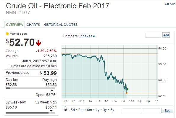 Κατά τ' άλλα, σημαντικές απώλειες καταγράφει το αργό πετρέλαιο κατά 2,50% και την τιμή να κινείται στα 52,60 δολ. το βαρέλι. Στον αντίποδα, μικρά κέρδη καταγράφει ο χρυσός κατά 0,45% στα 1,178 δολ. η ουγγιά.