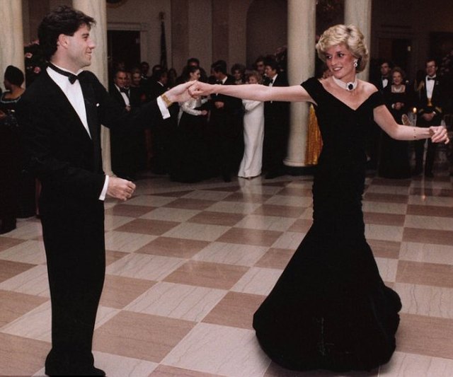 Μεταξύ των εμφανίσεων που έμειναν στην ιστορία, το σκούρο μπλε βελούδινο φόρεμα Victor Edelstein που φόρεσε σε δείπνο στον Λευκό Οίκο το 1985. Φορώντας αυτό το φόρεμα χόρεψε με τον ηθοποιό Τζον Τραβόλτα τον ύμνο της ντίσκο «You Should be Dancing» από την ταινία «Saturday Night Feaver». Με το όνομα «Travolta» το φόρεμα έχει τη δική του σελίδα στην Wikipedia.