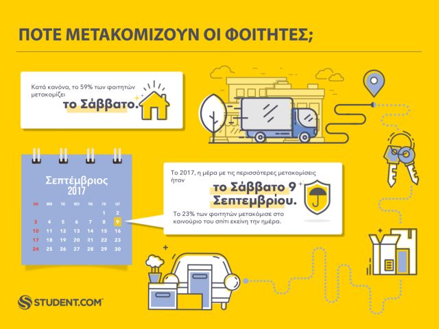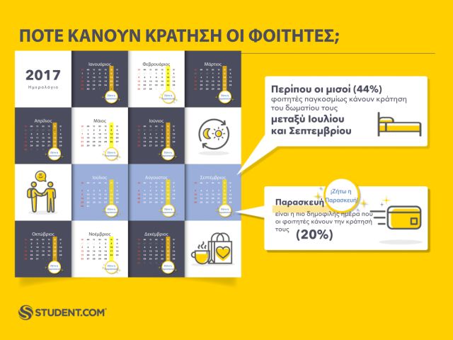 Πέρα από την κατάταξη των πόλεων, η Student.com αποκαλύπτει δεδομένα σχετικά με τον χρόνο κατά τον οποίο οι φοιτητές πραγματοποιούν την κράτησή τους, πότε μετακομίζουν, καθώς και την απόσταση που διανύουν προκειμένου να φτάσουν στον προορισμό τους. Οι φοιτητές που χρησιμοποίησαν τη Student.com για να κλείσουν τα φοιτητικά τους δωμάτια το 2017 ταξίδεψαν συνολικά 95 εκατομμύρια χιλιόμετρα για να φτάσουν στον τελικό τους προορισμό.