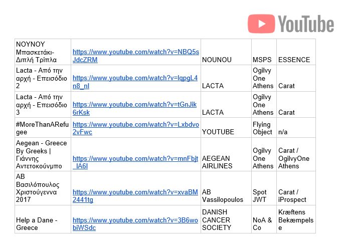«Συγχαρητήρια σε κάθε μάρκα, σε κάθε διαφημιστικό γραφείο και στις εταιρείες επικοινωνίας, για αυτή τη λίστα, καθώς αγκάλιασαν τη δύναμη της αφήγησης ιστοριών που απελευθερώνει το YouTube», δήλωσε ο Ηλίας Σούσης, Head of Domestic Greek Market, Agencies & YouTube.