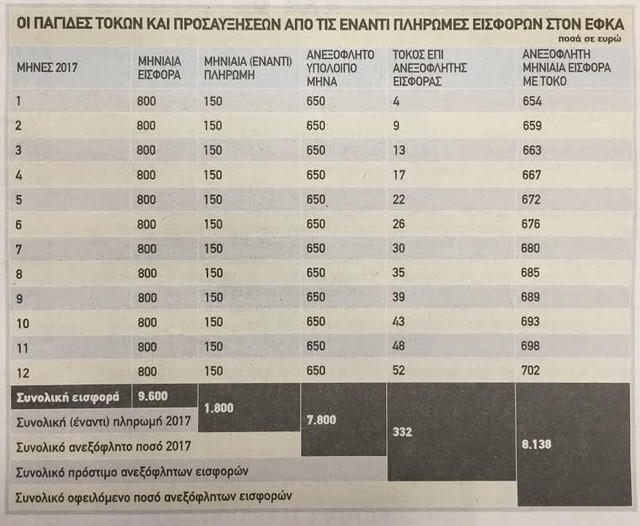 Βάση υπολογισμού των εισφορών θα είναι το εισόδημα του 2015 και όταν δηλωθεί το εισόδημα του 2016 θα γίνει και ο επανυπολογισμός και θα ακολουθήσει συμψηφισμός μέχρι τον Δεκέμβριο του 2017.