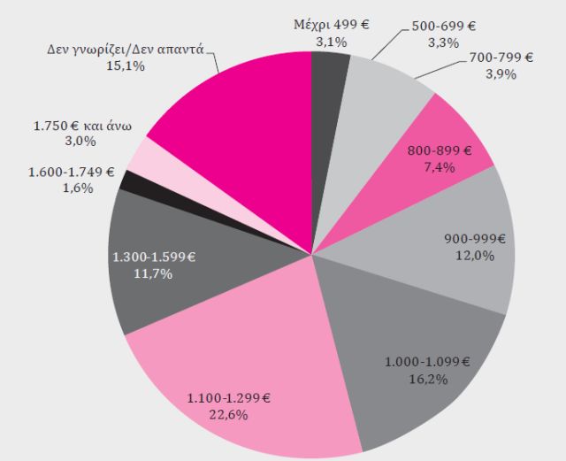 μεταξύ 800-999 ευρώ σε ποσοστό 16%