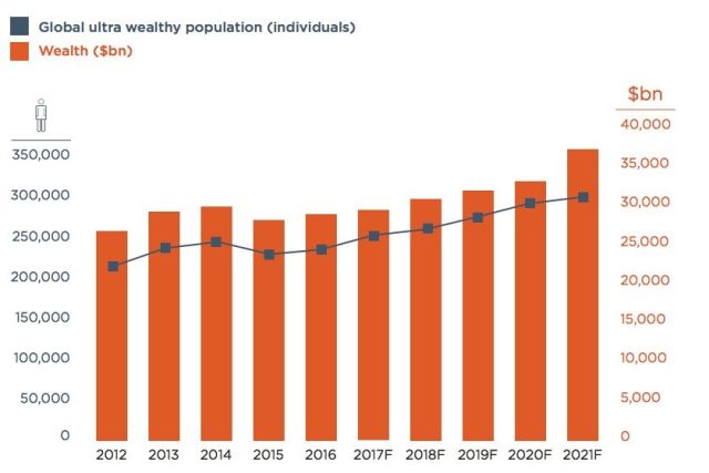 Οι πλούσιοι έγιναν πλουσιότεροι για μια ακόμη χρονιά γεγονός που καταδεικνύει το εμφανές χάσμα και τις ανισότητες σε παγκόσμιο επίπεδο. Σύμφωνα με την ετήσια έκθεση Wealth -X, πολίτες του κόσμου που στην κατοχή τους είχαν πάνω από 30 εκ. δολ, είδαν την περιουσία τους να αυξάνεται κατά 3,6%. Ο συνολικός τους πλούτος αυξήθηκε κατά 1,5% στα $27 τρισ. Oι ΗΠΑ είναι πρώτες στη λίστα με τις 30 χώρες με τους περισσότερους κατοίκους με περιουσία άνω των $30 εκατ. και ακολουθεί δεύτερη η Ιαπωνία.