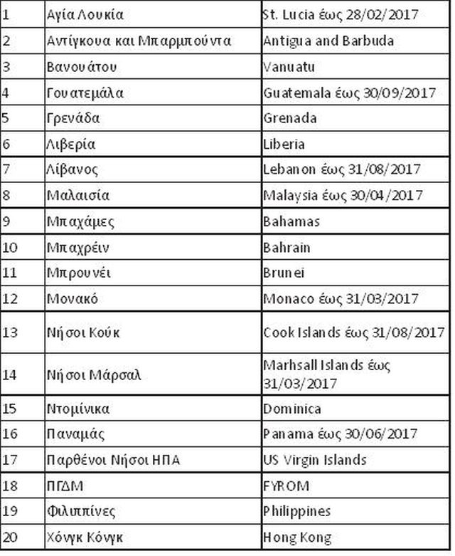 Για τις συναλαγές με τις παρακάτω χώρες, υπενθυμίζεται, μπλοκάρουν την έκπτωση επαγγελματικών δαπανών από τα ακαθάριστα έσοδα των ελληνικών επιχειρήσεων: