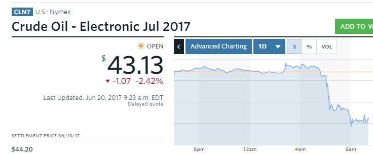 Ιδιαίτερα έντονες είναι οι πιέσεις σήμερα στην τιμή του πετρελαίου, σε συνέχεια των απωλειών το τελευταία διάστημα. Για την ώρα το συμβόλαιο Ιουλίου στις ηλεκτρονικές συναλλαγές στην Νέα Υόρκη διολισθαίνει αισθητά κατά 2,42% στα 43,13 δολ. το βαρέλι
