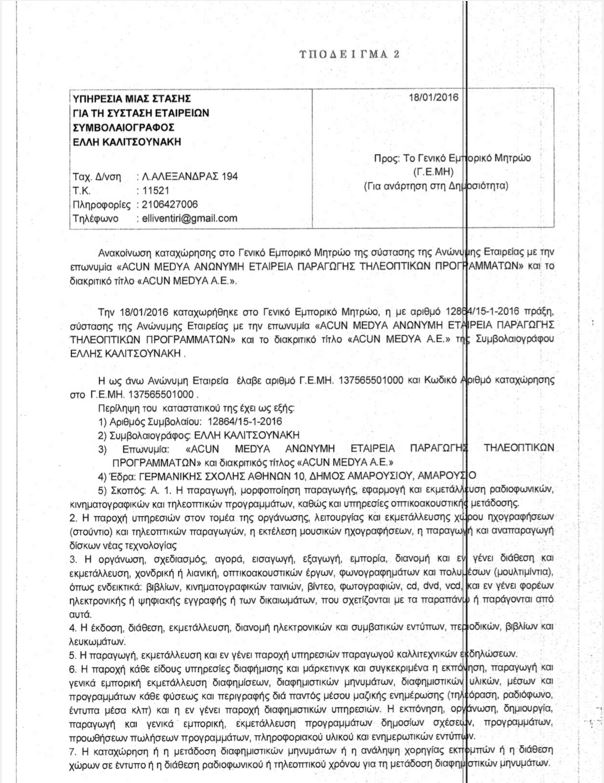 Η εταιρεία φέρει την επωνυμία «Acun Medya Ανώνυμη Εταιρεία Παραγωγής Τηλεοπτικών Προγραμμάτων» και συστάθηκε τον Ιανουάριο του τρέχοντος έτους. Σκοπός της, μεταξύ άλλων, είναι η παραγωγή, η μορφοποίηση παραγωγής, η εφαρμογή και εκμετάλλευση ραδιοφωνικών, κινηματογραφικών και τηλεοπτικών προγραμμάτων, καθώς και οι υπηρεσίες οπτικοακουστικής μετάδοσης. Επίσης, το σύνολο σχεδόν των υπηρεσιών που σχετίζονται με πρακτικές διαφήμισης, μάρκετινγκ και ραδιοτηλεοπτικών παραγωγών.