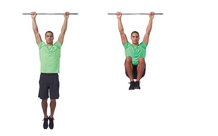 Κρεμάσου από ένα μονόζυγο με τα πόδια σου τεντωμένα. Αυτή είναι η αρχική θέση. Κρατώντας τα πόδια σου ενωμένα, τράβηξε τα γόνατα προς τα πάνω, όσο πιο κοντά μπορείς στο στήθος σου. Κράτησε αυτή την θέση για 1 δευτερόλεπτο σφίγγοντας τους κοιλιακούς σου και μετά αργά, επέστρεψε στην αρχική θέση. Αυτή είναι μια επανάληψη. Εκτέλεσε 3 σετ των 15 επαναλήψεων.