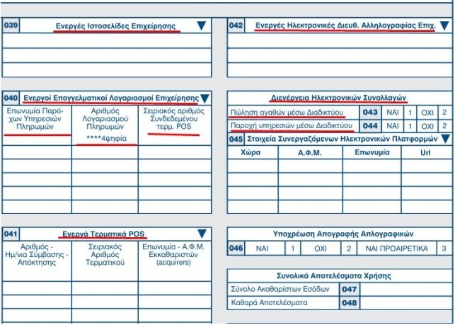 • Θα δηλώνεται εάν πραγματοποιούνται ηλεκτρονικές συναλλαγές και συγκεκριμένα η πώληση αγαθών και υπηρεσιών μέσω του διαδικτύου.