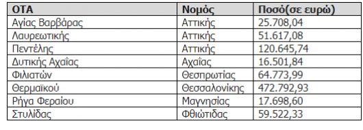 Ειδικότερα, από το Πρόγραμμα ΑΚΣΙΑ (19η Απόφαση), επιχορηγούνται οι δήμοι της χώρας που αναφέρονται στον ακόλουθο πίνακα, με το ποσό συνολικού ύψους 829.260,55 ευρώ, αποκλειστικά και μόνο για την εξόφληση υποχρεώσεών τους που προέρχονται από δικαστικές αποφάσεις και διαταγές πληρωμής, που έχουν καταστεί τελεσίδικες έως 31/7/2017. Η διαδικασία που οφείλουν να ακολουθήσουν οι επιχορηγούμενοι Δήμοι και οι σχετικές προϋποθέσεις για την εξόφληση των συγκεκριμένων υποχρεώσεων, ορίζεται στην υπ’ αριθμ. 30307/11-09-2017 απόφαση του Υπουργού Εσωτερικών.