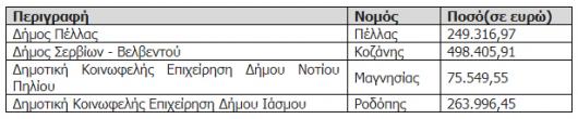 1 εκατ. ευρώ στους Δήμους Πέλλας, Σερβίων – Βελβεντού, Νοτίου Πηλίου και Ιάσμου για την εξόφληση ληξιπρόθεσμων υποχρεώσεων